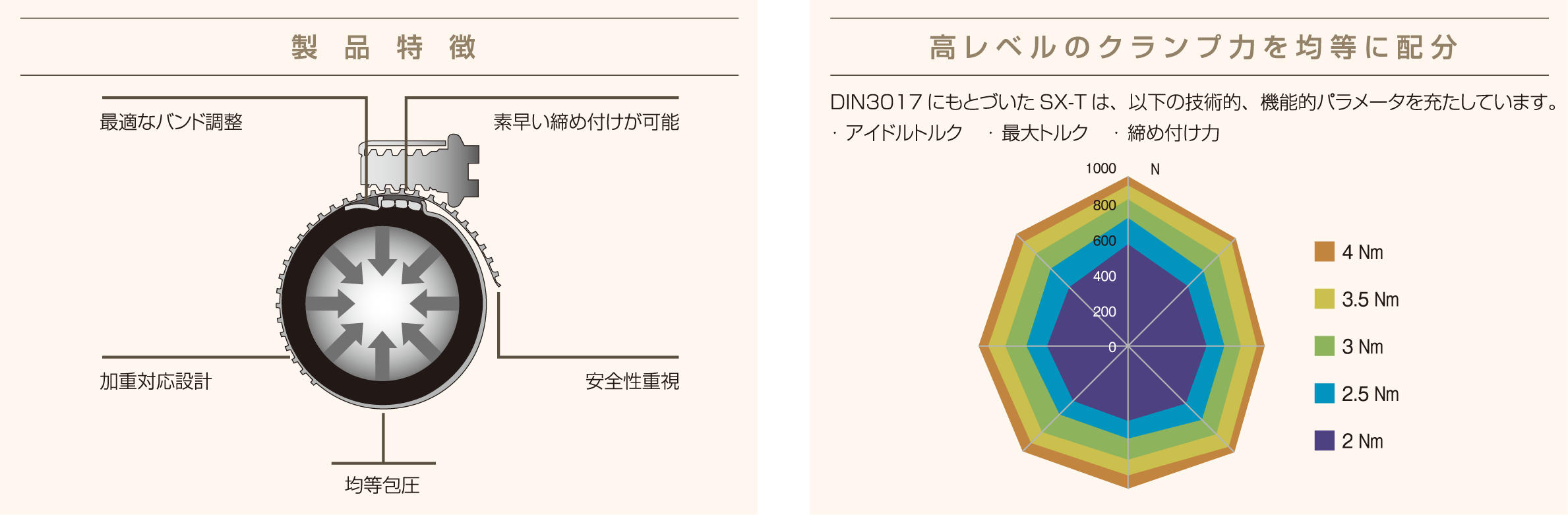 ハウジングが組み込まれ、クランプ力を均等に配分することで